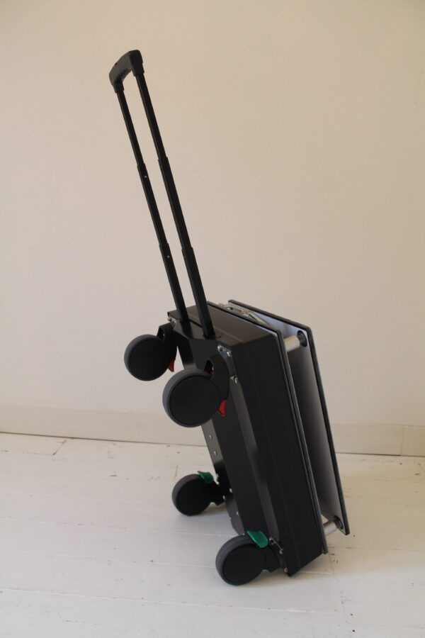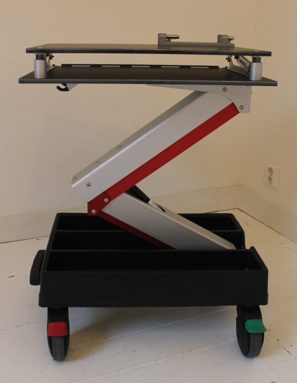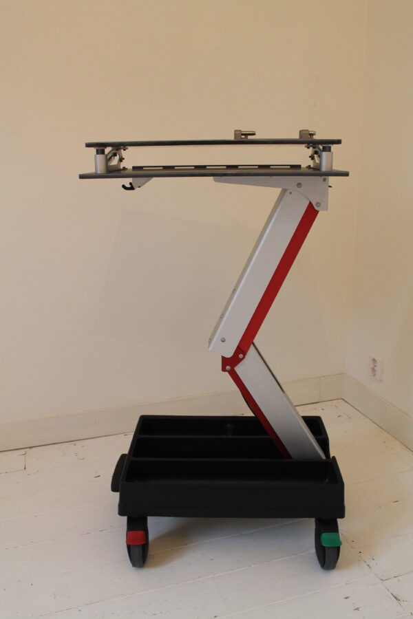Mobile foldable trolley specially designed for the 2nd generation UTC System. The height can be continuously adjusted, aided by a gas spring. Maximum height is 115 cm.